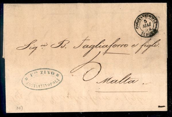 Lettera commerciale da Costantinopoli 5 MAI 54 per malta