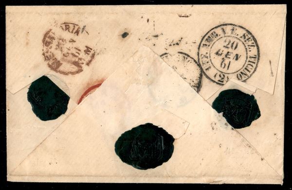 Letterina da Como 19 gen. 61 con bollo lineare Assicurata diretta a Genova e affrancata con 20 cent azzurro + 40 cent vermiglio mattone (15Ca + 16Ba)