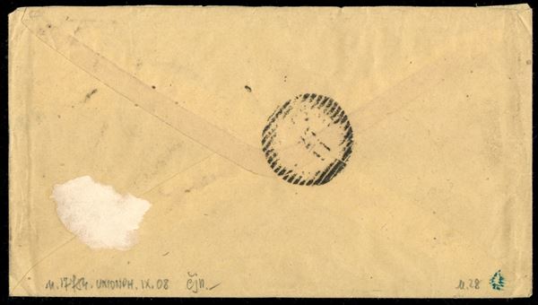 Lineare azzurro verdastro Seregno annullatore su lettera affrancata con Vittorio Emanuele II 20 cent arancio per Straccis - a lato bollo dell'ambulante Chiasso-Milano n. 3 del 26 novembre 1877 - molto raro