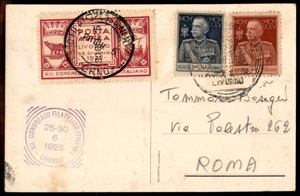 Livorno Roma 28/30.6.25 (Longhi 1369a) - cartolina del volo speciale con vignetta - Chiavarello