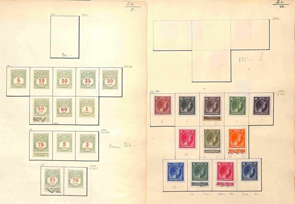 LUSSEMBURGO - 1882/1944 - Piccola collezione di valori prevalentemente usati del periodo montati in fogli artigianali - da esaminare