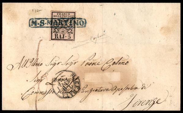 M. S. Martino (azzurro - Pti 11) - Involucro affrancato con 5 bai (6a) per Firenze del 7.2.52 - Raybaudi