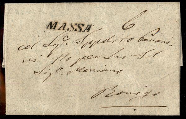 Massa - letterina per Rovigo del 29.3.1844 via S.M. Maddalena - 6 di tassa