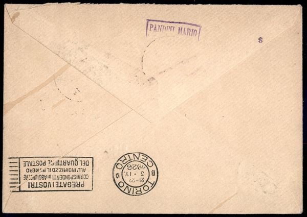 Pavia Torino 3.4.26 (Longhi 1462) - aerogramma del volo con annulli speciali - Chiavarello