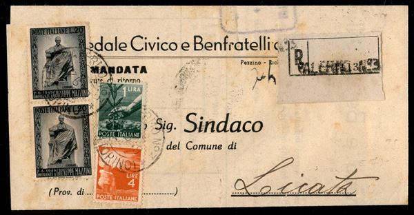 Piego Sindaci raccomandato da Palermo a Licata del 17.6.1949 (550 + 554 + due 604)