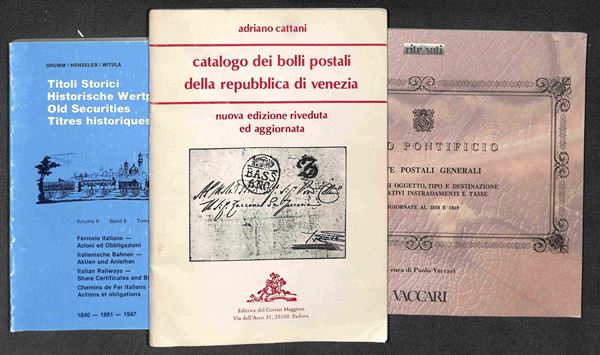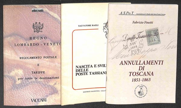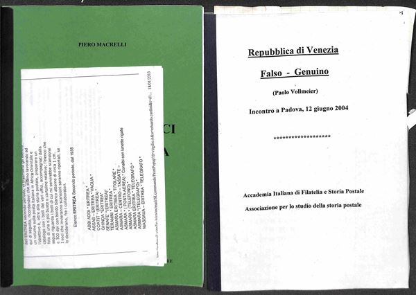 Raccolta di testi (fotocopiati) e cataloghi con diverse interessanti presenze relative alla storia postale Prefilatelica degli Antichi Stati Italiani e del Regno d'Italia - circa 50 volumi - da esaminare