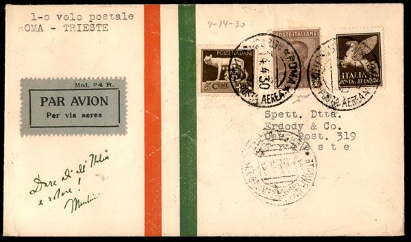 Roma Trieste 14.4.30 (Longhi 2118a) - aerogramma del primo volo - Chiavarello