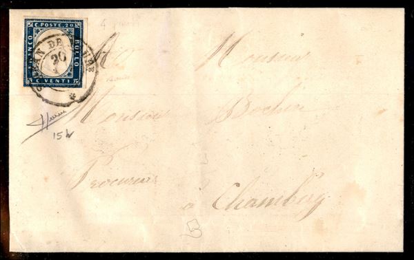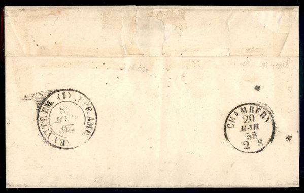 S. Jean de Maur.e (P.ti 4) - 20 cent celeste vivace (15h) su lettera per Chambery del 20.3.1858 - S. Sorani