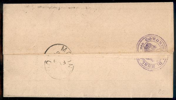Striscia di 5 del 2 cent (15) su piego da Siena a Montalcino del 1.2.1889