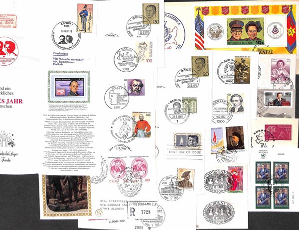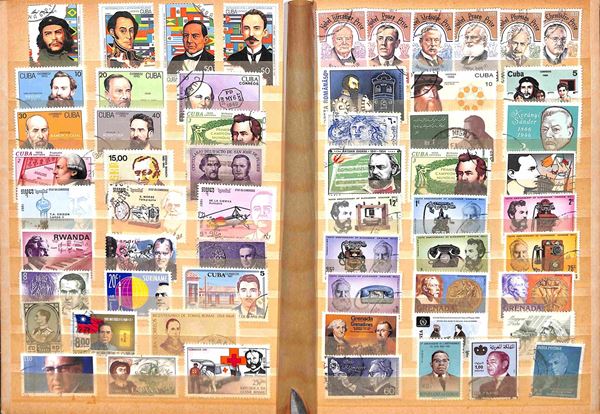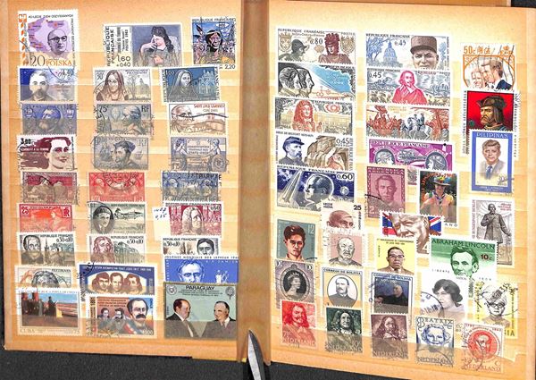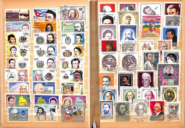 TEMATICA PERSONAGGI - Piccolo classificatore con oltre 650 valori usati e nuovi + 20 oggetti postali di diversi paesi mondiali - da esaminare