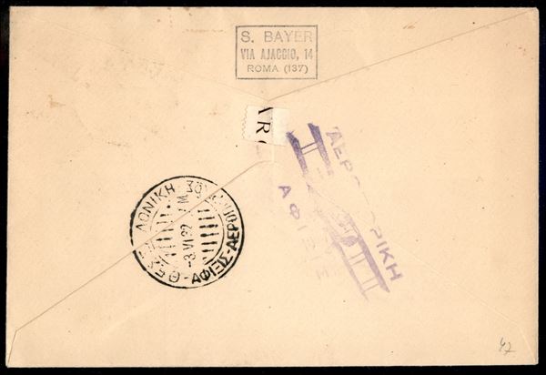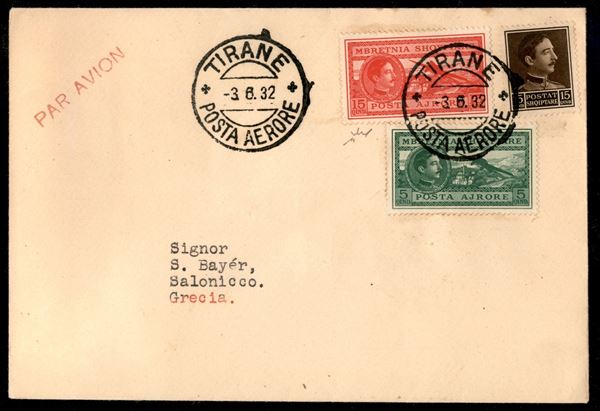 Tirana Salonicco 3.6.32 (Longhi 2700) - aerogramma del primo volo - 55 volati - Chiavarello