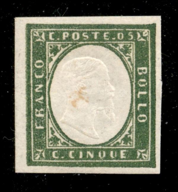 1862 - 5 cent (13Dc - verde olivastro) - gomma integra - piccolo trasudo oleoso al centro - M. Raybaudi