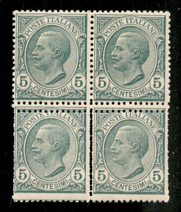 1906 - Leoni quartina 5 cent con doppia dentellatura al centro (81oa) nuova con gomma integra