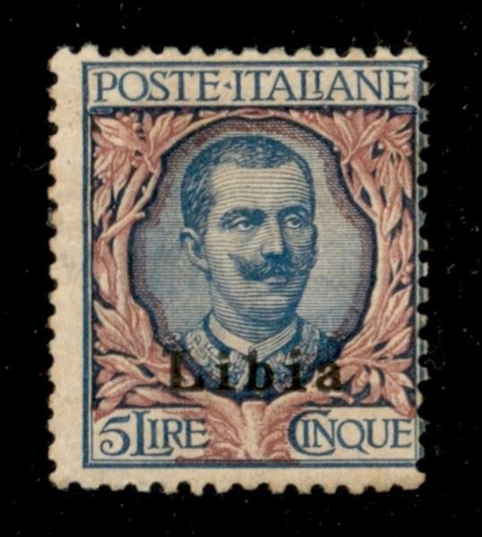 1915 - 5 lire Floreale (11) - gomma originale e traccia di linguella