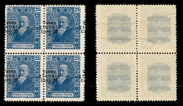 1920 - 25 u 25 cent Valore Globale (103 g) - quartina - soprastampa a cavallo (GL a destra) - gomma integra