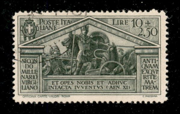 1930 - 10 lire + 2,50 lire Bimillenario Virgiliano (290) - usato - molto bello - cert. Raybaudi