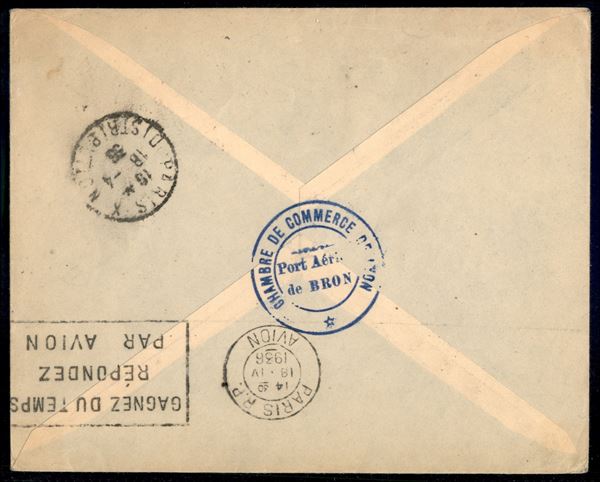 1936 (18 aprile) - Bron Aeroport - aerogramma per Parigi