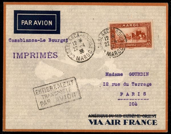 1936 (22 aprile) - Casablanca Parigi - Muller 28 - aerogramma del volo