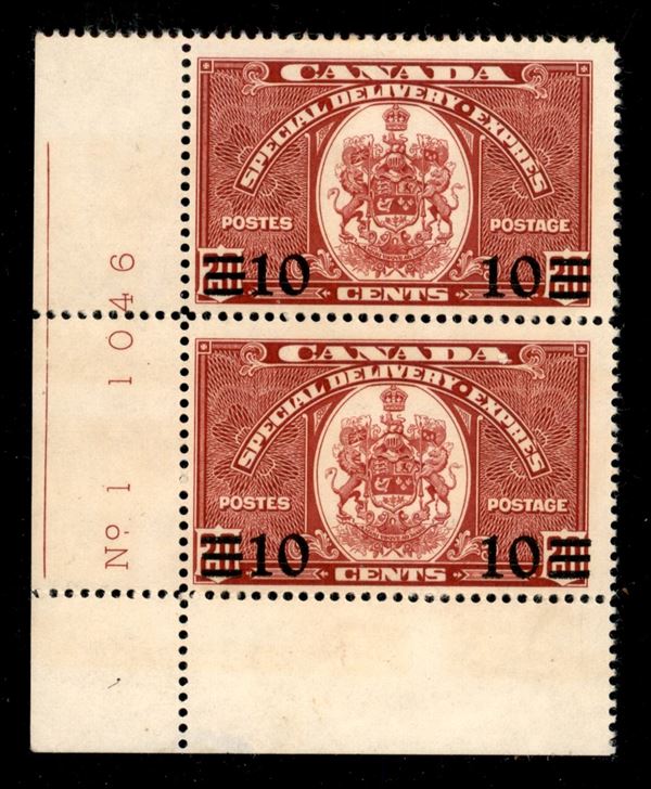 1939 - coppia del 10 cent su 20 Espresso (212) con angolo di foglio numerato - gomma originale (integra nel pezzo inferiore)