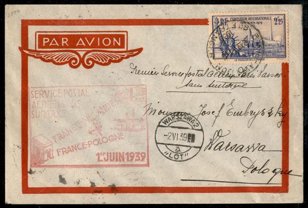 1939 (1 giugno) - Francia Polonia - Muller 455 - aerogramma del volo