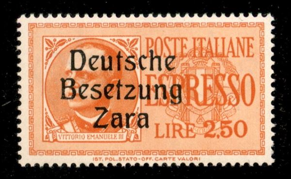 1943 - 2.50 lire (2g varietà) con soprastampa a sinistra - C stretta (pos. 11) - gomma integra - non catalogato - Raybaudi