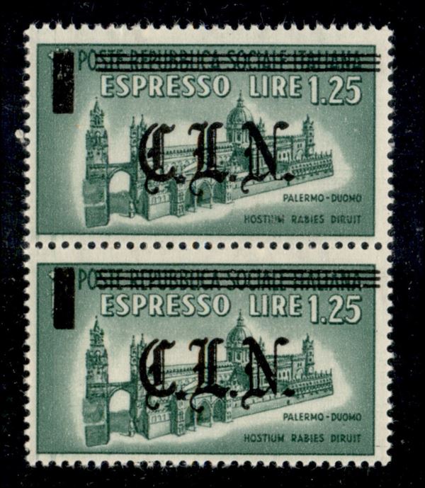 1945 - 1.25 lire (Unificato 17d + 17 - Errani 17g + 17) - N unita al punto in coppia (pos. 8/13) col normale - gomma integra - cert. Raybaudi