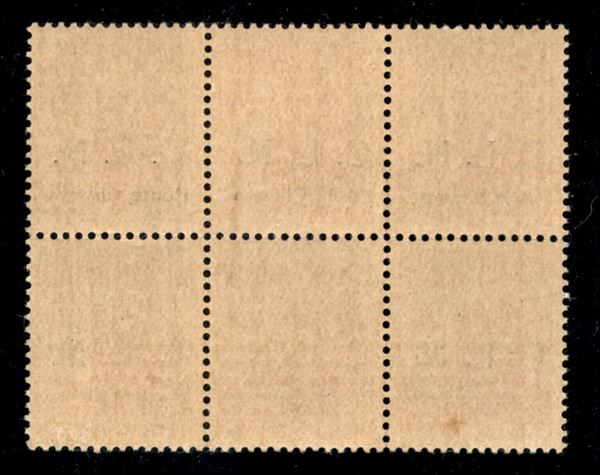 1945 - 20 cent (3 + 3ba + due 3bb) - blocco di 6 con C punto piccolo in basso a sinistra + L punto piccolo nella coppia centrale - gomma integra