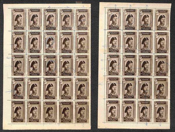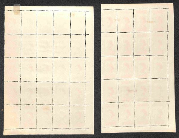 1946 - 2 zloty bruno nero (16) - blocco di 20 + blocco di 25 entrambi con le correzioni di bozza per le imperfezioni di stampa - molto interessante - senza gomma