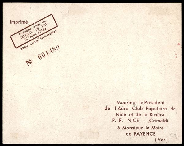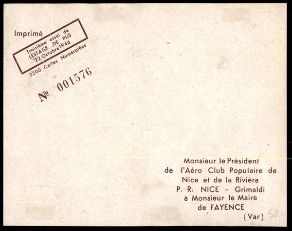1946 (22 ottobre) - Nice Grimaldi/Aeroclub - due cartoline speciali