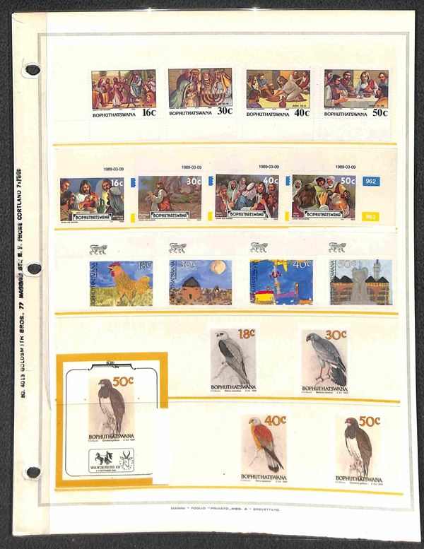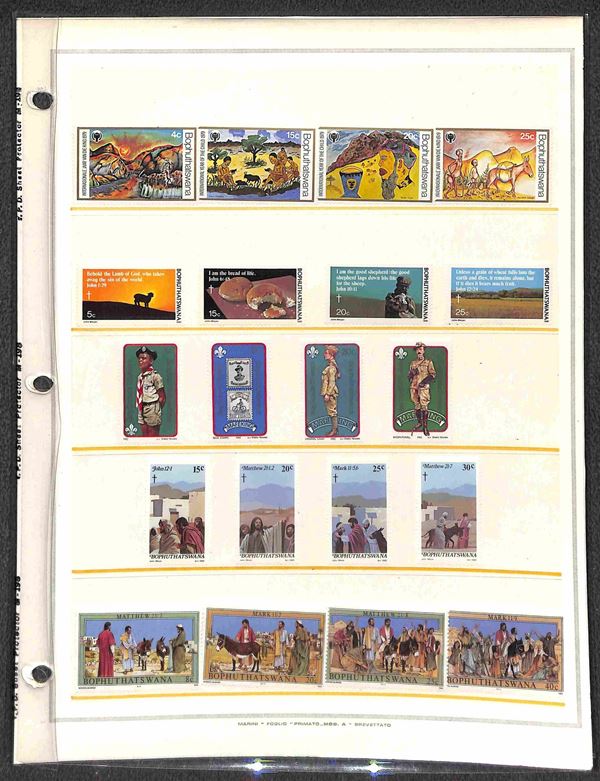BOTSWANA - 1979/1994 - Insieme di serie complete e foglietti nuovi del periodo montate su 5 fogli Primato - da esaminare