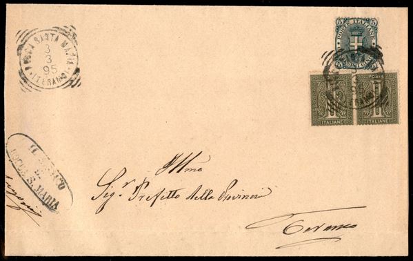 Coppia del 1 cent (14) + 5 cent (59) in uso misto su piego da Rocca S. Maria a Teramo del 3.3.1895