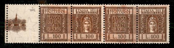 Coppia del 100 lire bruno Marche da Bollo (Tassa Contratti di Borsa) su carta ricongiunta - gomma integra bicolore