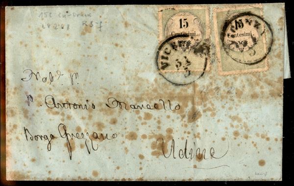 Due 15 cent (7) su involucro di lettera da Vicenza a Udine - diffusi ingiallimenti