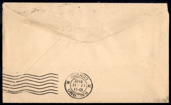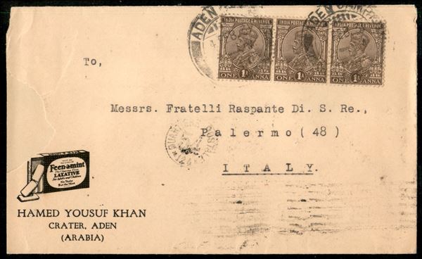 Feen a mint Laxative - busta pubblicitaria per Palermo del 4.2.1931 (India 102 striscia di 3)