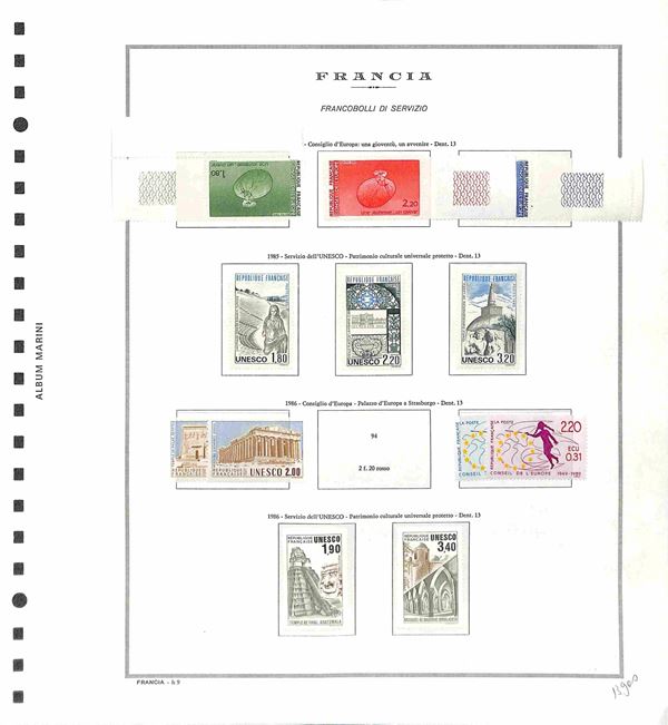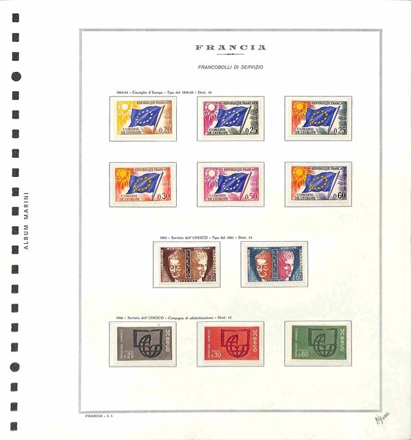 FRANCIA - 1958/1989 - Servizio - Consiglio d'Europa e Unesco - inizio di collezione montata su 8 fogli Marini - da esaminare