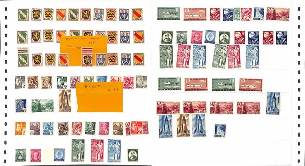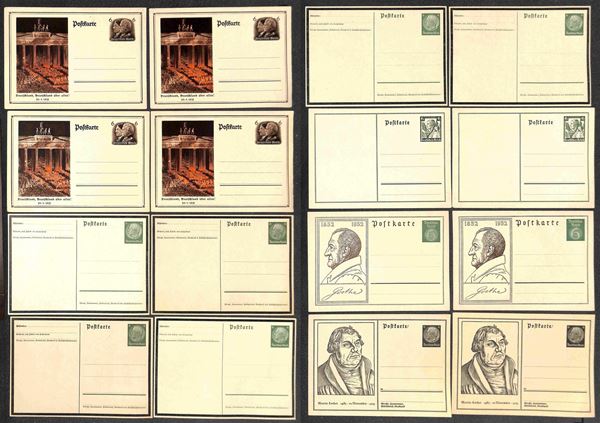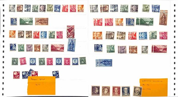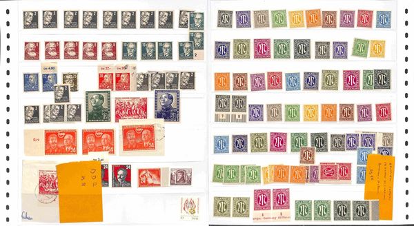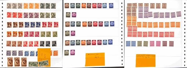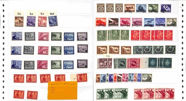GERMANIA - 1933/1950 - Insieme di valori prevalentemente nuovi con anche serie complete montati su fogli a listelli pił alcune cartoline postali del Reich - buona presenza dei territori occupati - merita esame