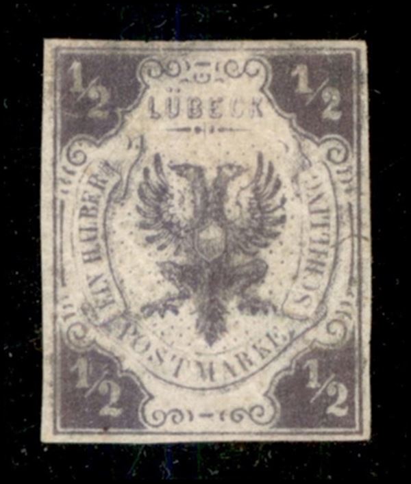 Lubecca - 1859 - 1/2 scellino (1) - gomma originale - punti chiari in alto - da esaminare - Diena (2.800)