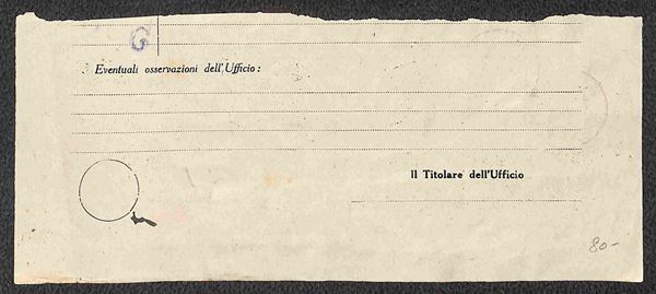 Parte di modulo Duplicazione buoni fruttiferi affrancato con striscia di tre del 1,25 lire (495) + 25 cent (491) + 1,75 lire Imperiale (sedici 254) - Roma Appio 18.4.44