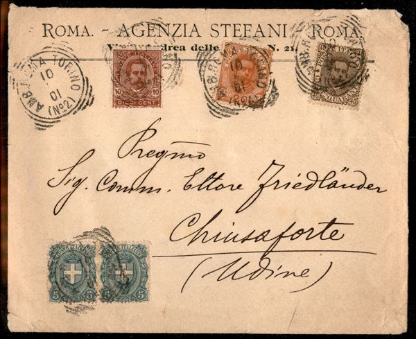 Quadricolore Umberto di tre emissioni diverse (45 + 60/61 + due 67) da Roma a Chinsaforte del 31.8.05 - Ambulante Roma Torino - ex coll. Provera