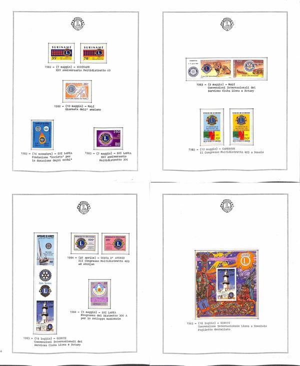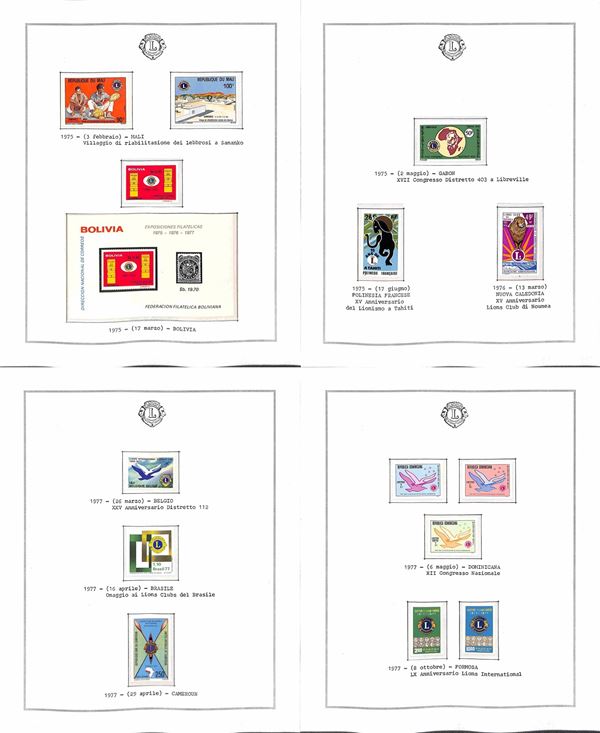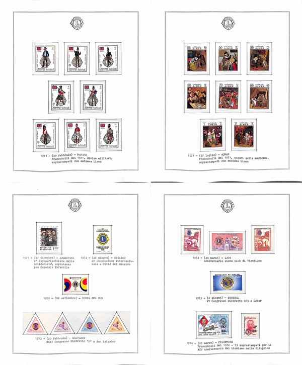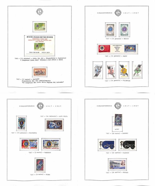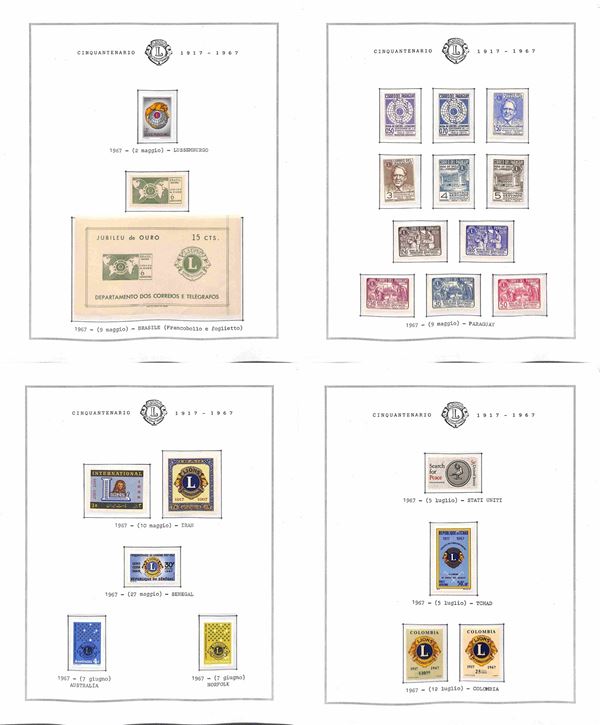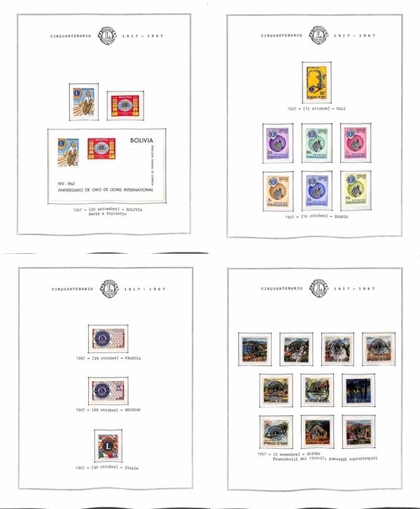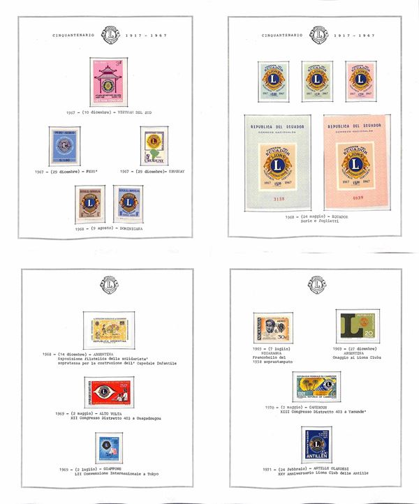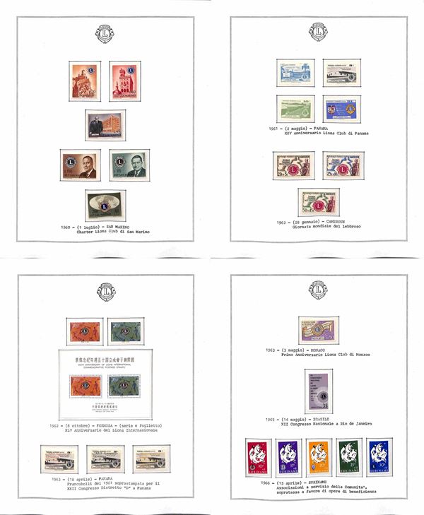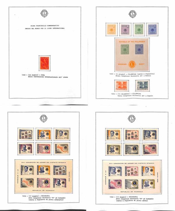 TEMATICA - LIONS INTERNATIONAL - 1940/2014 - Collezione di valori serie complete e foglietti nuovi del periodo 1940/1985 montati in fogli Marini + una scatola e due album con centinaia di buste e cartoline - ottimo insieme