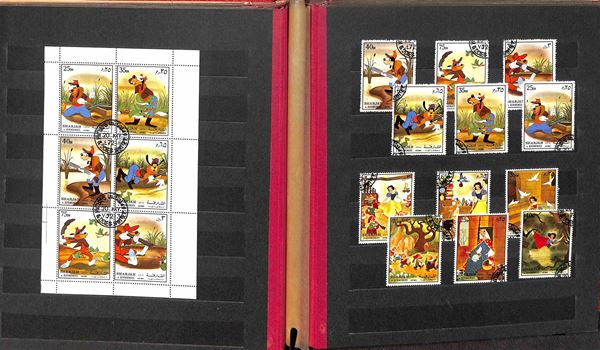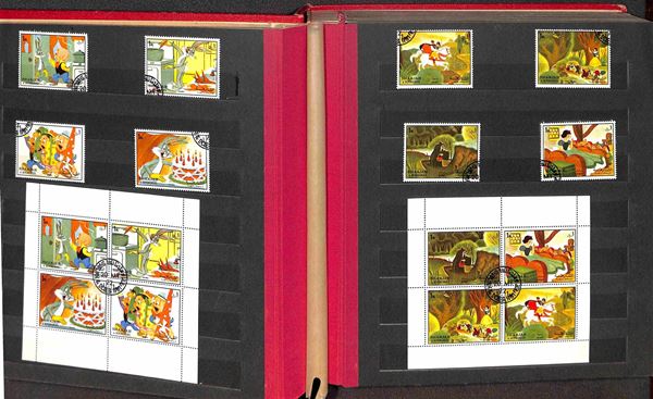 TEMATICA - Walt Disney + Fauna - Piccola collezione di valori foglietti e minifogli in raccoglitore - usati