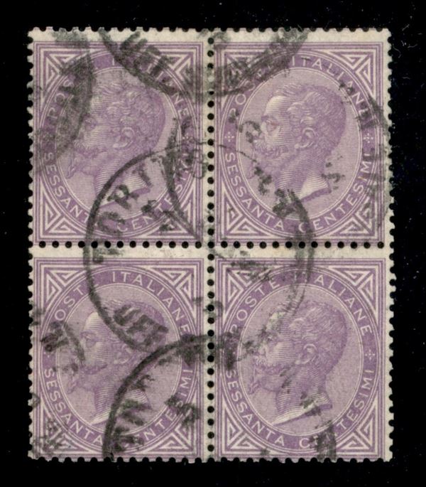 1863 - Quartina del 60 cent lilla (T21) - usato - Vaccari + cert. Diena