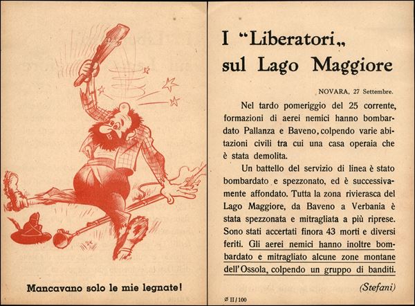 1944 - I Liberatori sul Lago Maggiore - volantino fronte retro di propaganda