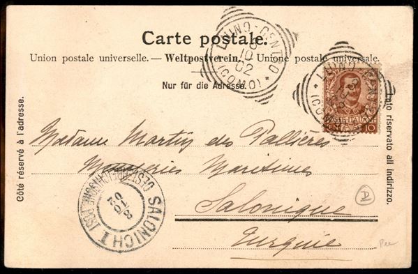 Cartolina paesaggistica di Lugano affrancata con 10 cent Floreale (71) da Luino 6.10.02 per Salonicco - non comune destinazione - ex coll. Provera