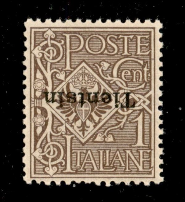 1 cent (4a) con soprastampa capovolta - gomma originale con traccia di linguella