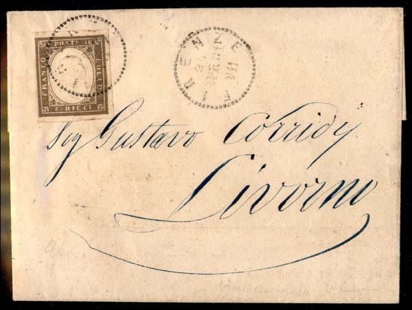10 cent bruno grigio olivastro (14Cg) su lettera da Firenze a Livorno del 26.4.61