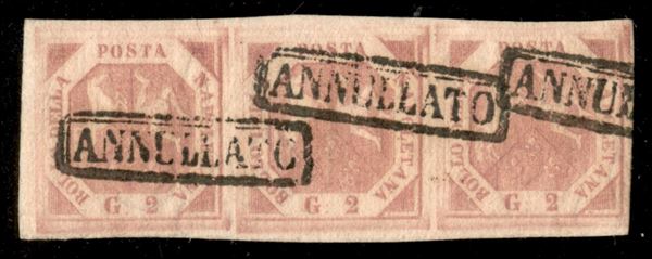 1851 - Striscia orizzontale di tre del 2 grana rosa (5) - grandi margini - molto bella - Diena + Raybaudi