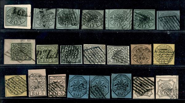 1852 - Prima emissione - Insieme di 27 pezzi con 7 valori diversi - prima scelta - tutti usati