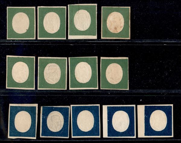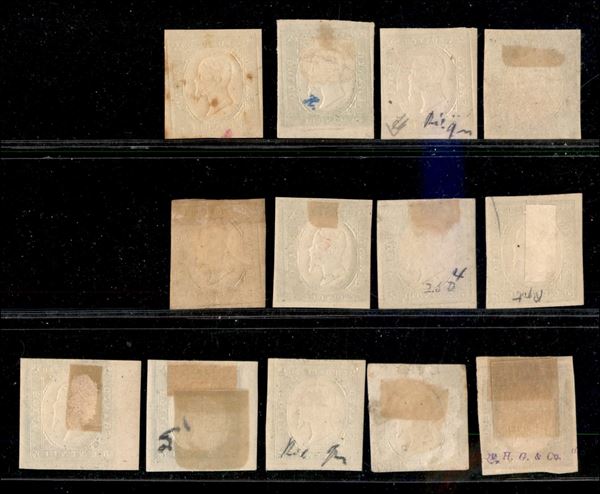 1854 - Non emessi/Ristampe - insieme di otto 5 cent (tipo 10) + cinque 20 cent (tipo 11) - gomma originale e senza gomma - da esaminare
