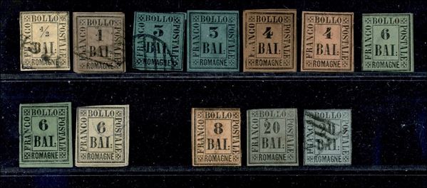 1859 - Governo Provvisorio - Insieme di 12 pezzi dell'emissione (con ristampe) - seconda scelta - gomma originale e usati